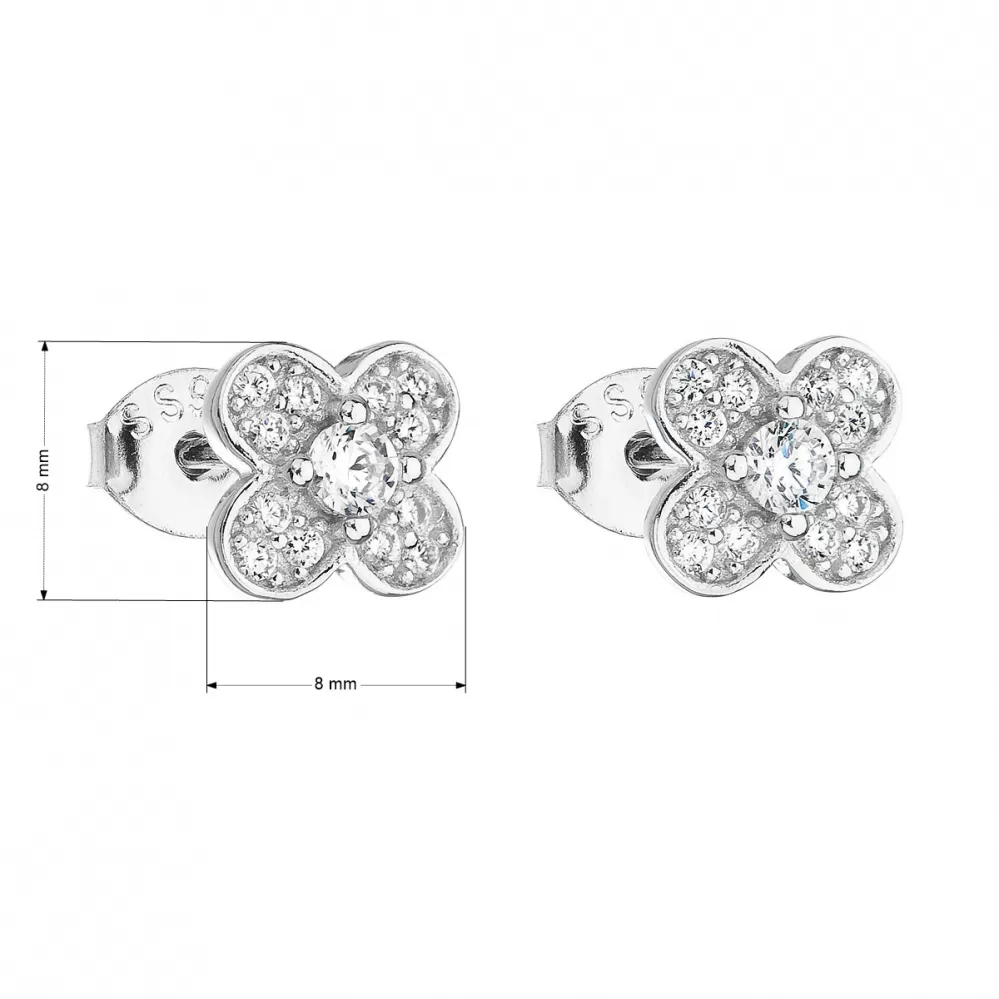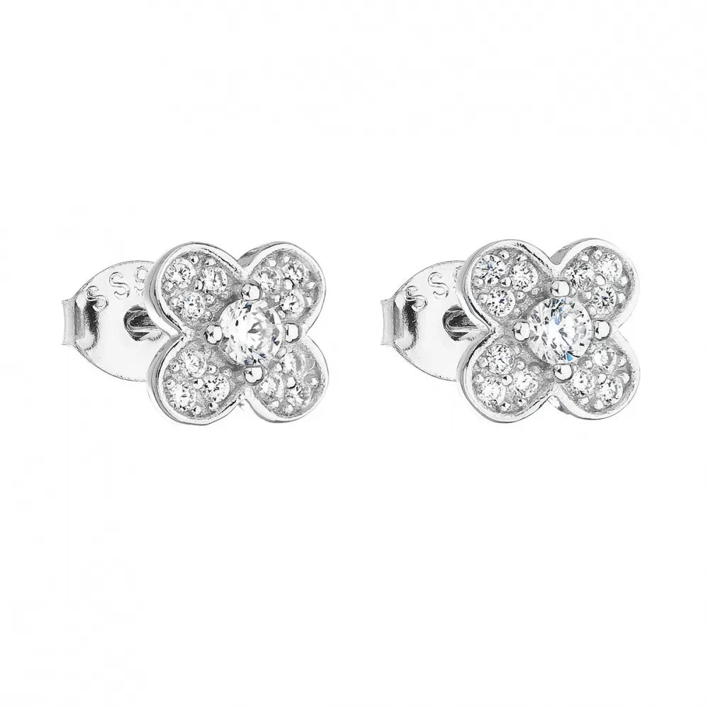 Stříbrné náušnice pecka se zirkonem bílá kytička 11148.1
