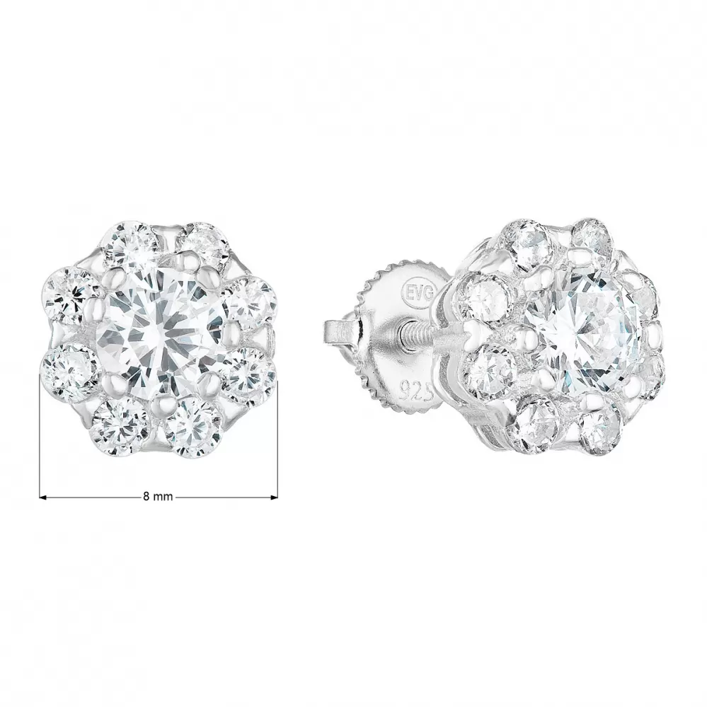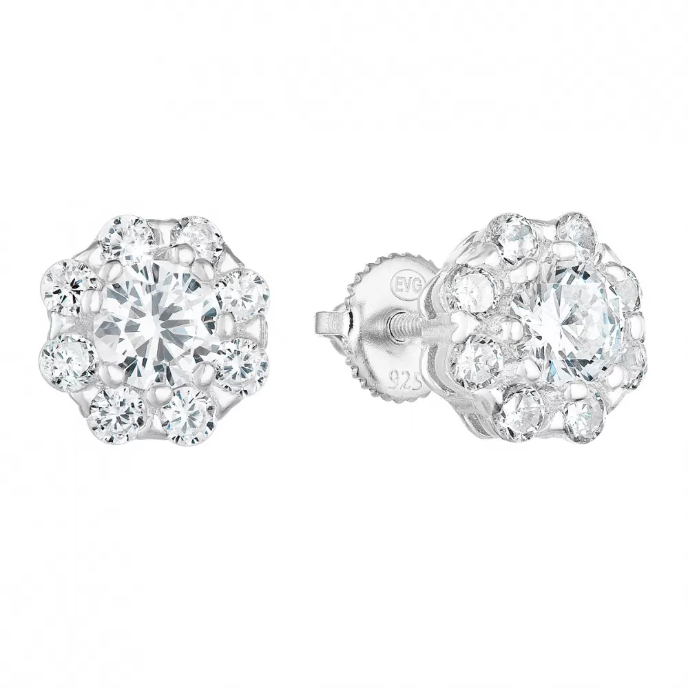 Stříbrné náušnice pecka se zirkonem bílá kytička 11289.1