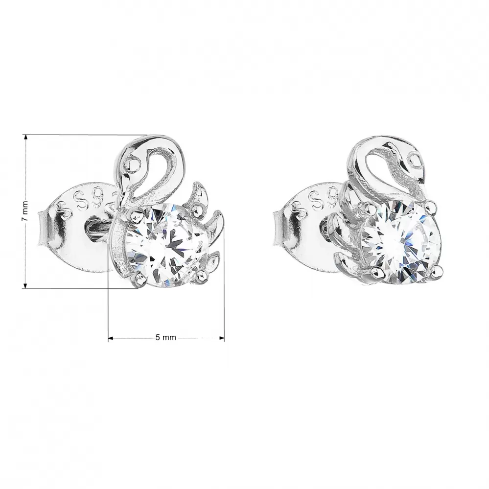 Parametry stříbrných náušnic pecka se zirkonem bílá labuť 11098.1