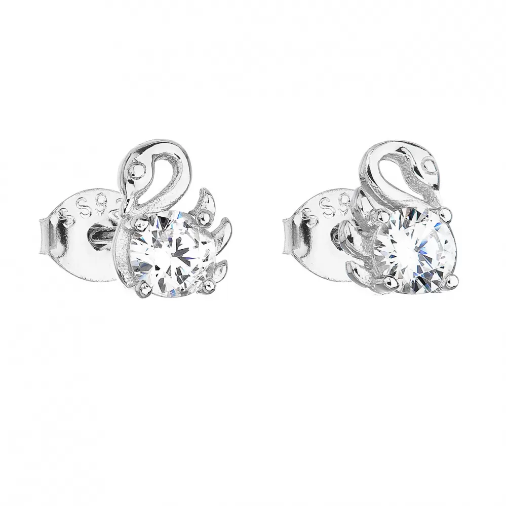 Stříbrné náušnice pecka se zirkonem bílá labuť 11098.1