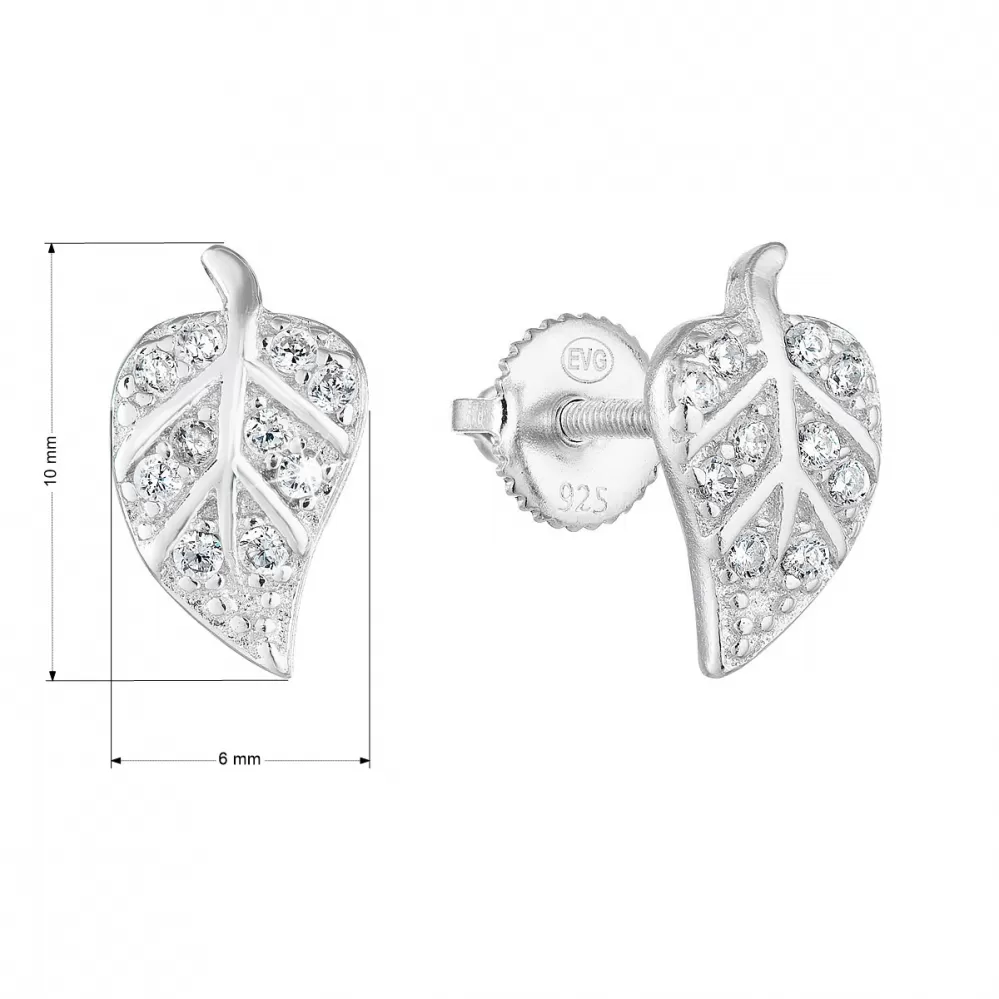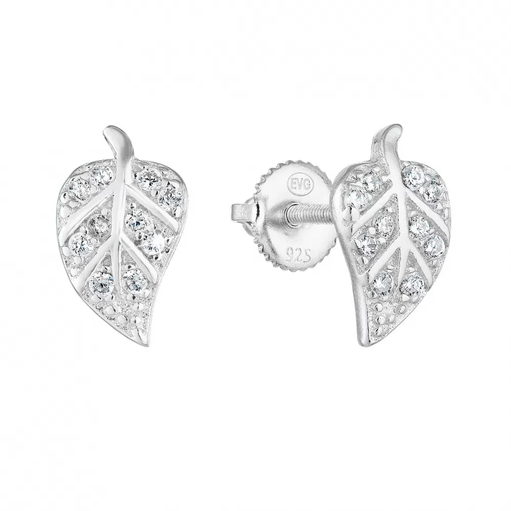 Milujete přírodní motivy? Doplňte svou šperkovnici stříbrnými náušnicemi ve tvaru listu osázené bílými zirkony.