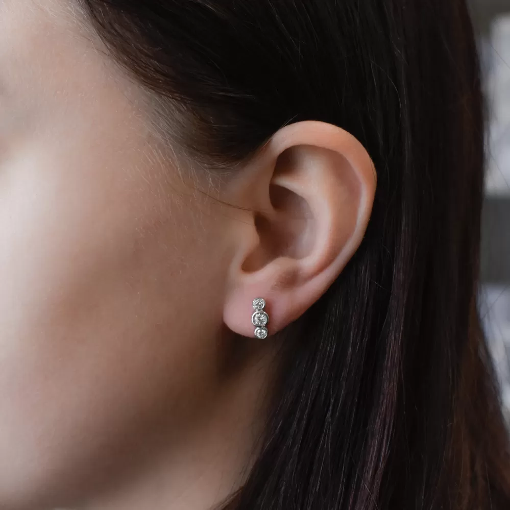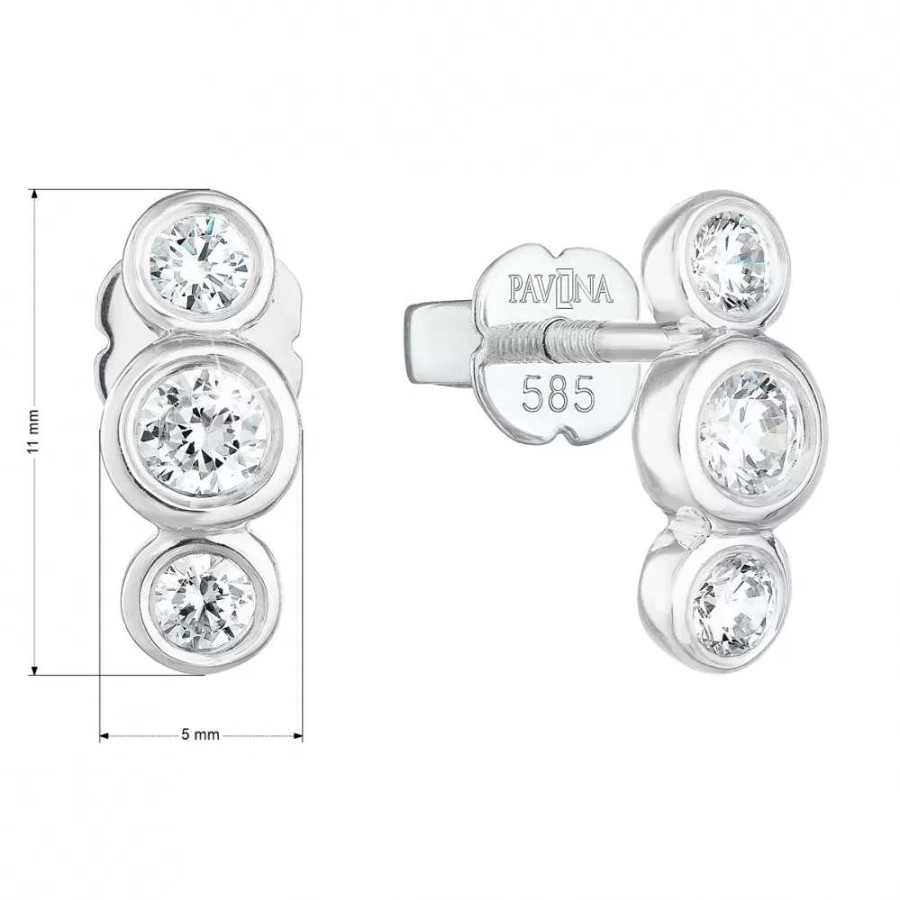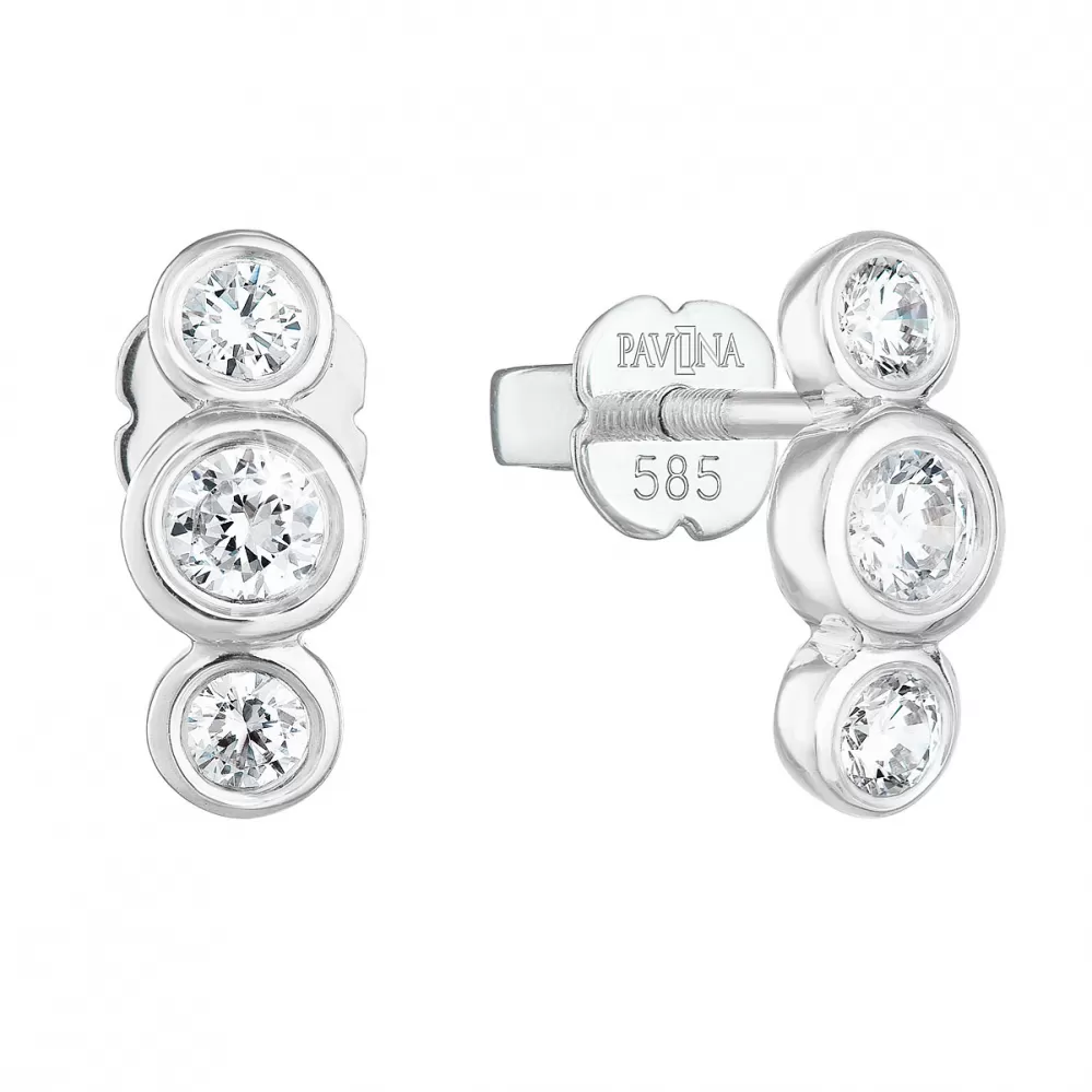 Nádherné briliantové náušnice 81009.1 si zamilujete na první pohled. Jsou jednoduché, originální a stanou se vašimi nejlepšími společníky, ať už vyrazíte kamkoliv. Náušnice jsou vyrobeny z bílého zlata o ryzosti 585/1000 a jsou ozdobeny třemi kulatými brilianty, které se úžasně třpytí. Šperk se zapíná na šroubek, nemusíte se tak obávat jeho ztráty, šroubek náušnice spolehlivě ochrání. Náušnice pro vás s nejvyšší precizností vyrobily naše šikovné šperkařky v dílně v Jablonci nad Nisou. Pro naše šperky využíváme pouze prvotřídní materiály, které zaručují dlouhou životnost doplňku. Náušnice vám připravíme do dárkové krabičky, taštičky a a přidáme také certifikát dokazující pravost zlata i briliantů.
