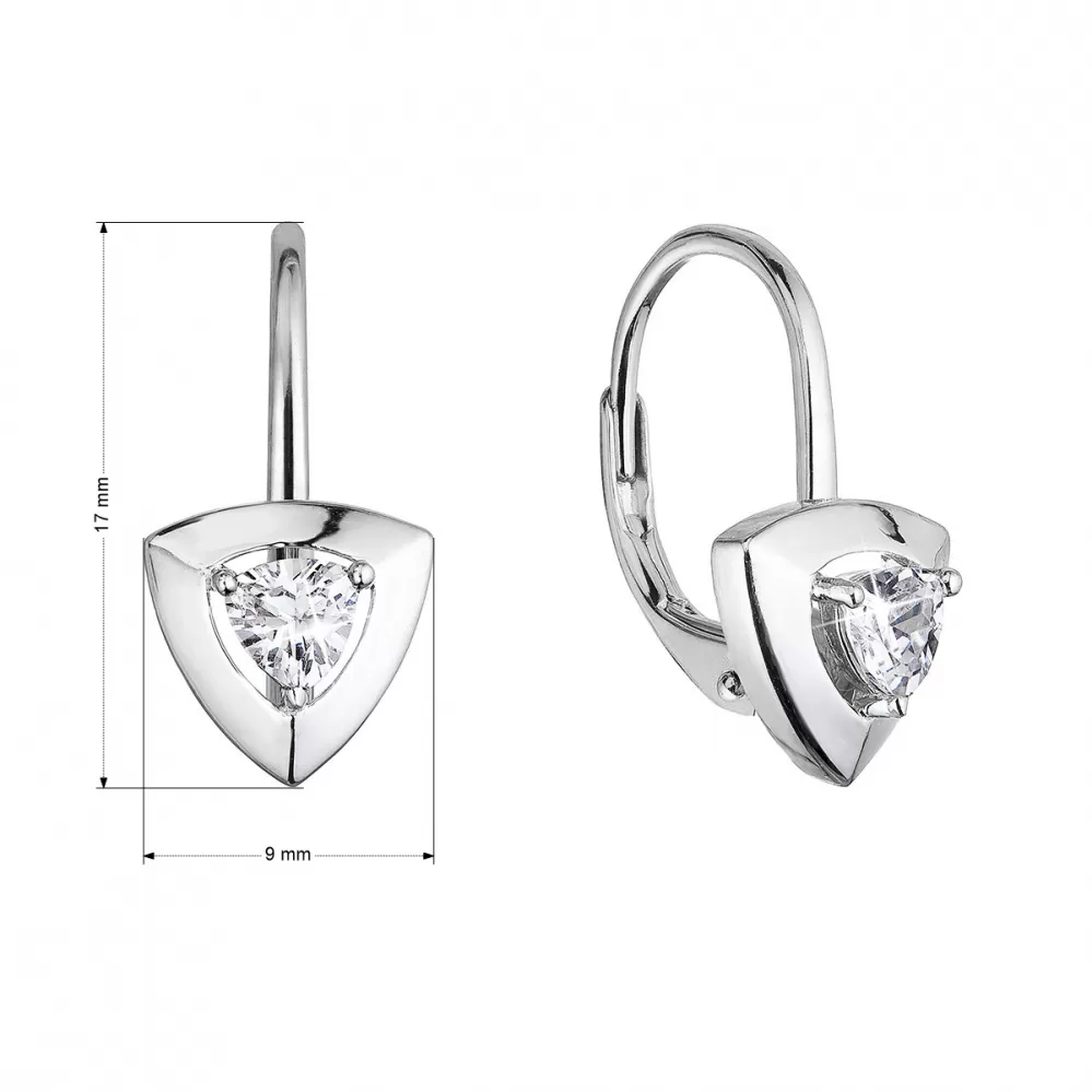Zirkon umístěný uprostřed trojúhelníku je stejného tvaru a představuje elegantní středový prvek. Jeho třpyt dodává náušnicím nádech luxusu a vytváří dojem, že se malý klenot zrodil z geometrických linií.