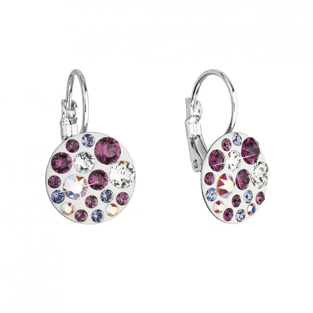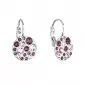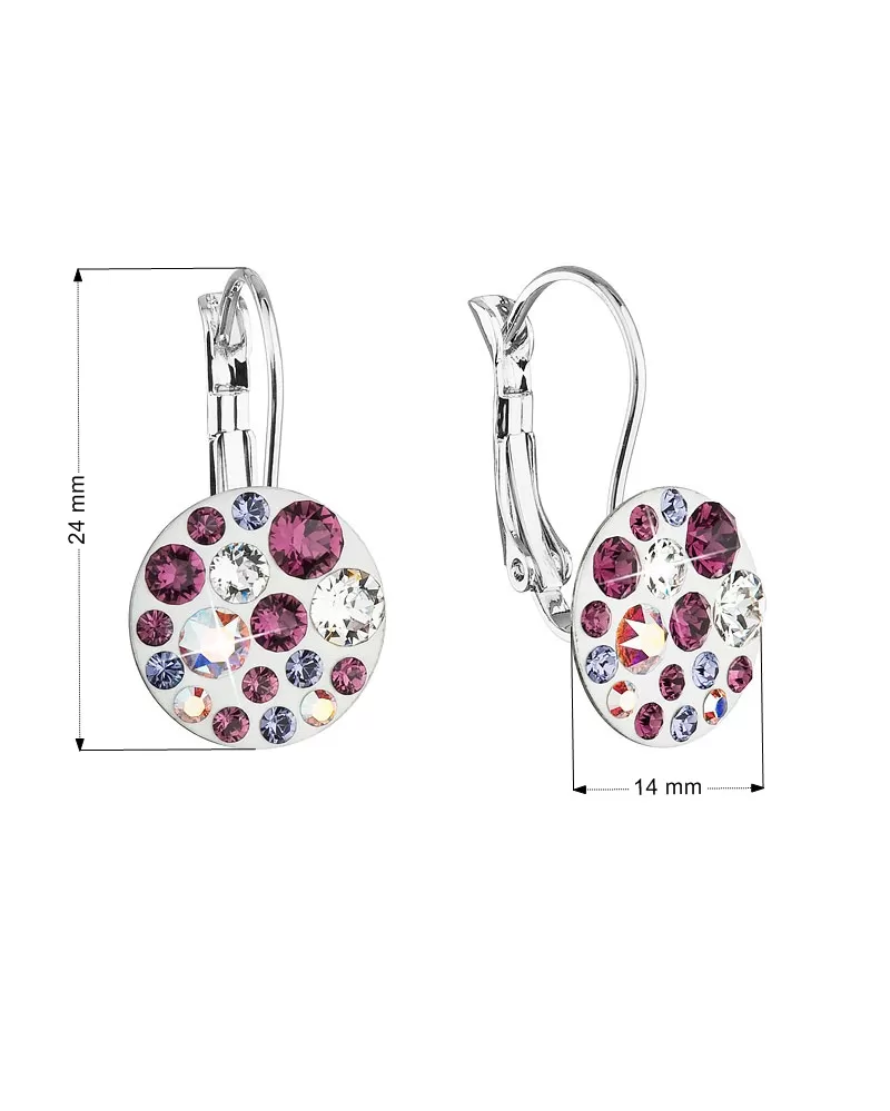 Kulaté bižuterní náušnice 51035.3 mají délku 24 mm a zdobí je několik Swarovski krystalů v bílé a fialové barvě. Náušnice se zapínají se na klapkukterá je spolehlivě ochrání proti nechtěné ztrátě.