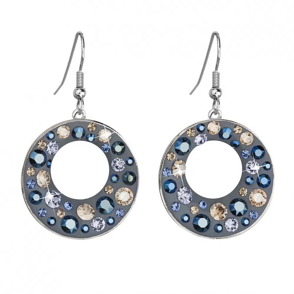 Kulaté náušnice jsou zdobeny mixem modrých krystalů Swarovski. Bižuterní náušnice 51040.3 navléknete jednoduše do vašeho ucha pomocí háčku. Neobsahují žádné množství niklu a jsou tedy vhodným dárkem i pro alergiky.