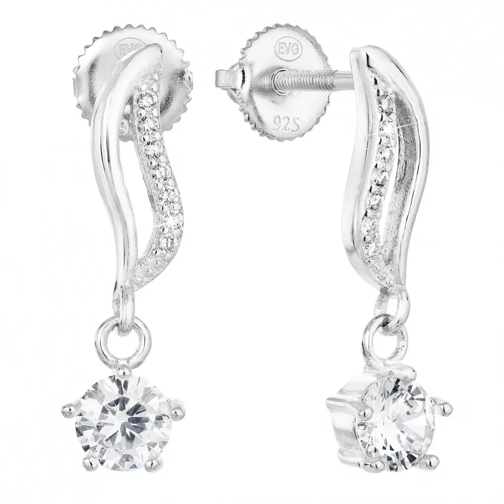 Stříbrné náušnice visací se zirkonem bílá vlnka 11308.1