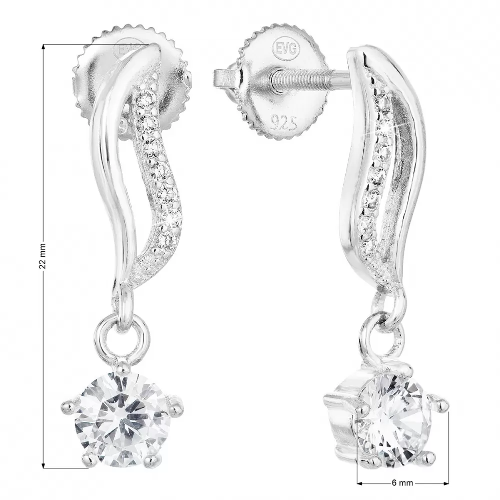 Parametry stříbrných visacích náušnic se zirkonem bílá vlnka 11308.1