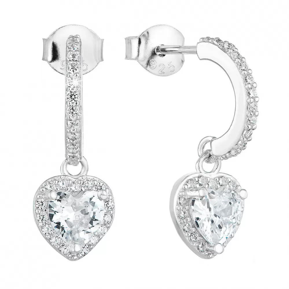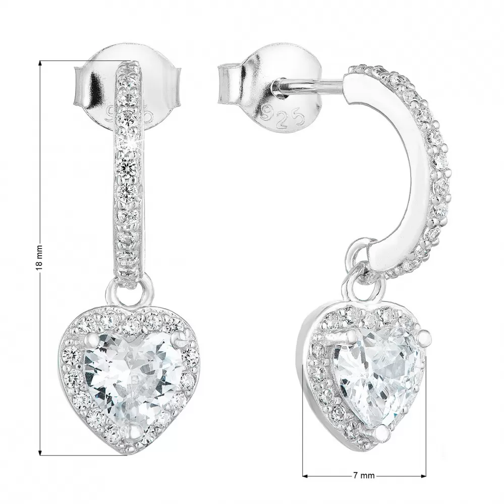 Stříbrné náušnice visací se zirkonem bílé srdce 11230.1