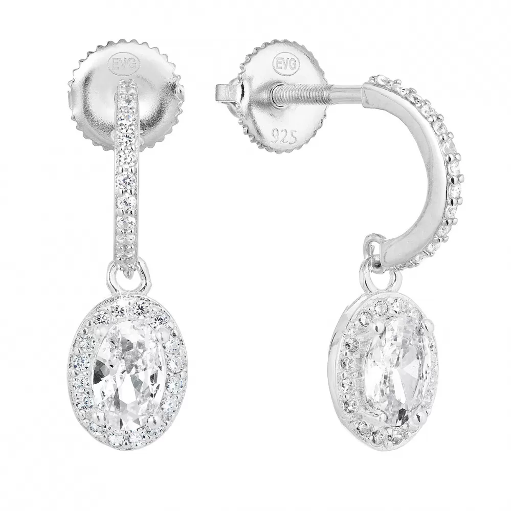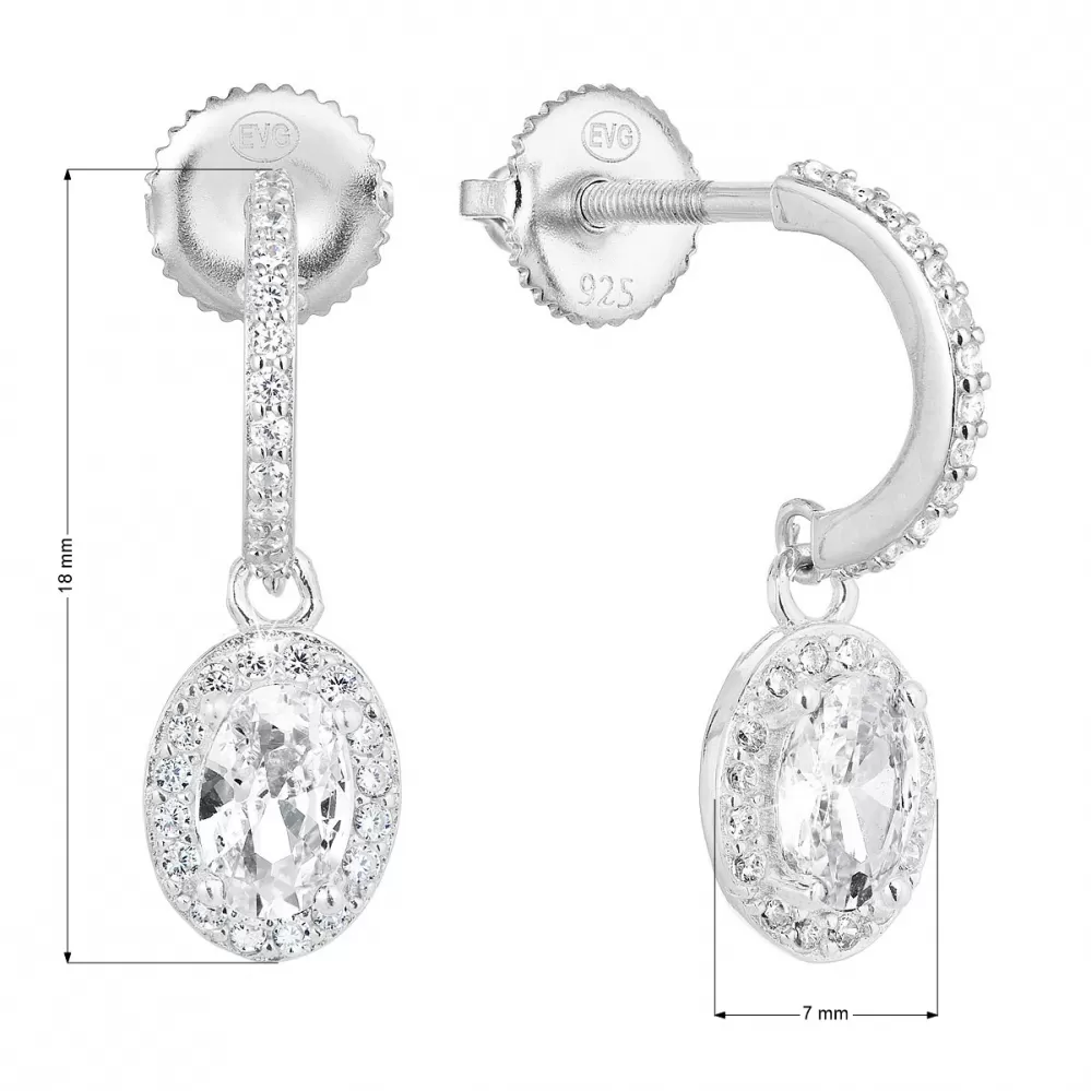 Stříbrné náušnice visací se zirkonem bílý ovál 11228.1