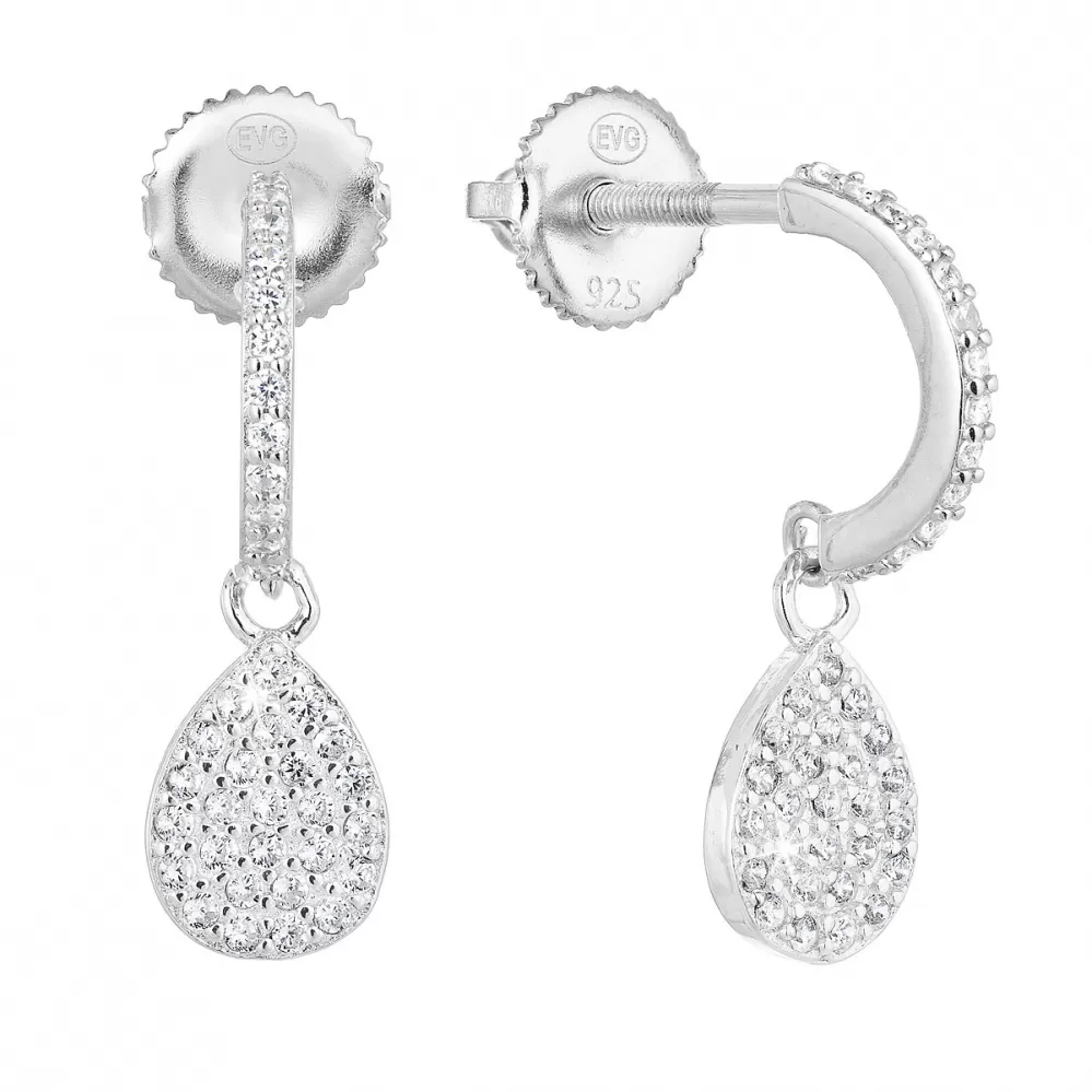 Stříbrné náušnice visací se zirkonem v bílé barvě 11231.1