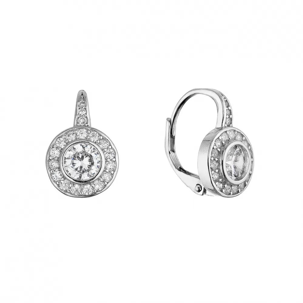 Objevte zářivou krásu stříbrných náušnic 11620.1, které okouzlí svým elegantním designem a třpytem čirých zirkonů. Tyto visací náušnice v kulatém tvaru jsou vyrobeny ze stříbra o ryzosti 925/1000 a pro vyšší odolnost a dlouhotrvající lesk jsou opatřeny rhodiovou úpravou.