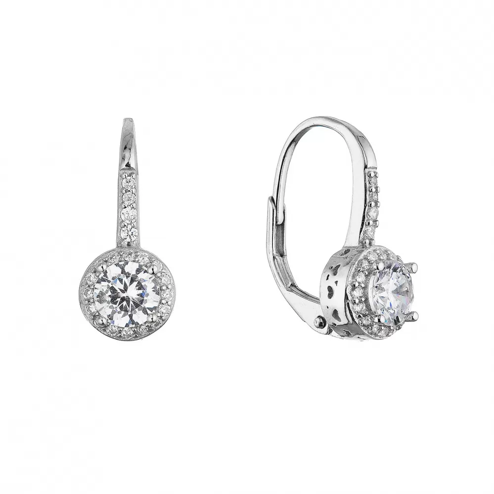 Elegantní visací náušnice 11621.1 stříbrné 925/1000 s rhodiovou úpravou ve tvaru kruhu. Mají klasické zapínání na klapku, která zajišťuje bezpečné nošení.