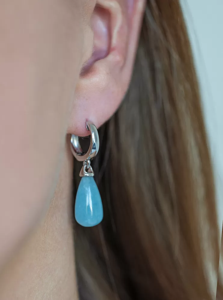 Náušnice jsou vyrobeny ze stříbra ryzosti 925/1000 s rhodiovou povrchovou úpravou, která dodává šperku luxusní stříbrný lesk a zároveň chrání před zčernáním a poškrábáním. Jejich jedinečný design kombinuje jemnost a dynamiku - pravý akvamarín ve tvaru něžné kapky se při každém pohybu lehce pohupuje, čímž vytváří elegantní a živý šperk. Náušnice mají spolehlivé zapínání na kroužek.