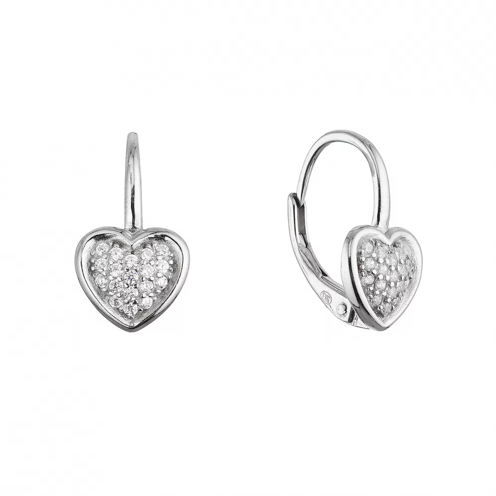 Stříbrné visací náušnice 11647.1 z kvalitního stříbra 925/1000 s rhodiovou úpravou okouzlí jemným romantickým designem ve tvaru srdce. Uvnitř každého srdce jsou precizně vsazeny drobné kamínky v barvě krystal, které celé náušnici dodávají decentní třpyt a elegantní vzhled.