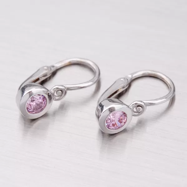 Dětské náušnice jsou vyrobené z bílého čtrnáctikarátového zlata 585/1000 v lesklé povrchové úpravě s jedním růžovým zirkonem se zapínáním na brizury.… Celý popis