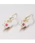 Náušničky ve tvaru kytičky, jsou vyrobené ze žlutého čtrnáctikarátového zlata 585/1000 v lesklé povrchové úpravě s pěti bílými zirkony zobrazující kvítky a s jedním červeným zirkonem uprostřed.