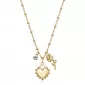 Elegantní náhrdelník z kolekce Chakra vnese do Vašeho stylu jemnou symboliku lásky a naděje. Vyroben z hypoalergenní oceli s decentním přívěskem ve tvaru srdce a jemnou růži zdobenou bílými krystaly, přiláká pohled, aniž by působil přehnaně. Ocel je opatřena PVD povrchovou úpravou v barvě žlutého zlata. Díky délce 54 cm se pohodlně nosí jako samostatný doplněk nebo v kombinaci s dalším jemným řetízkem.