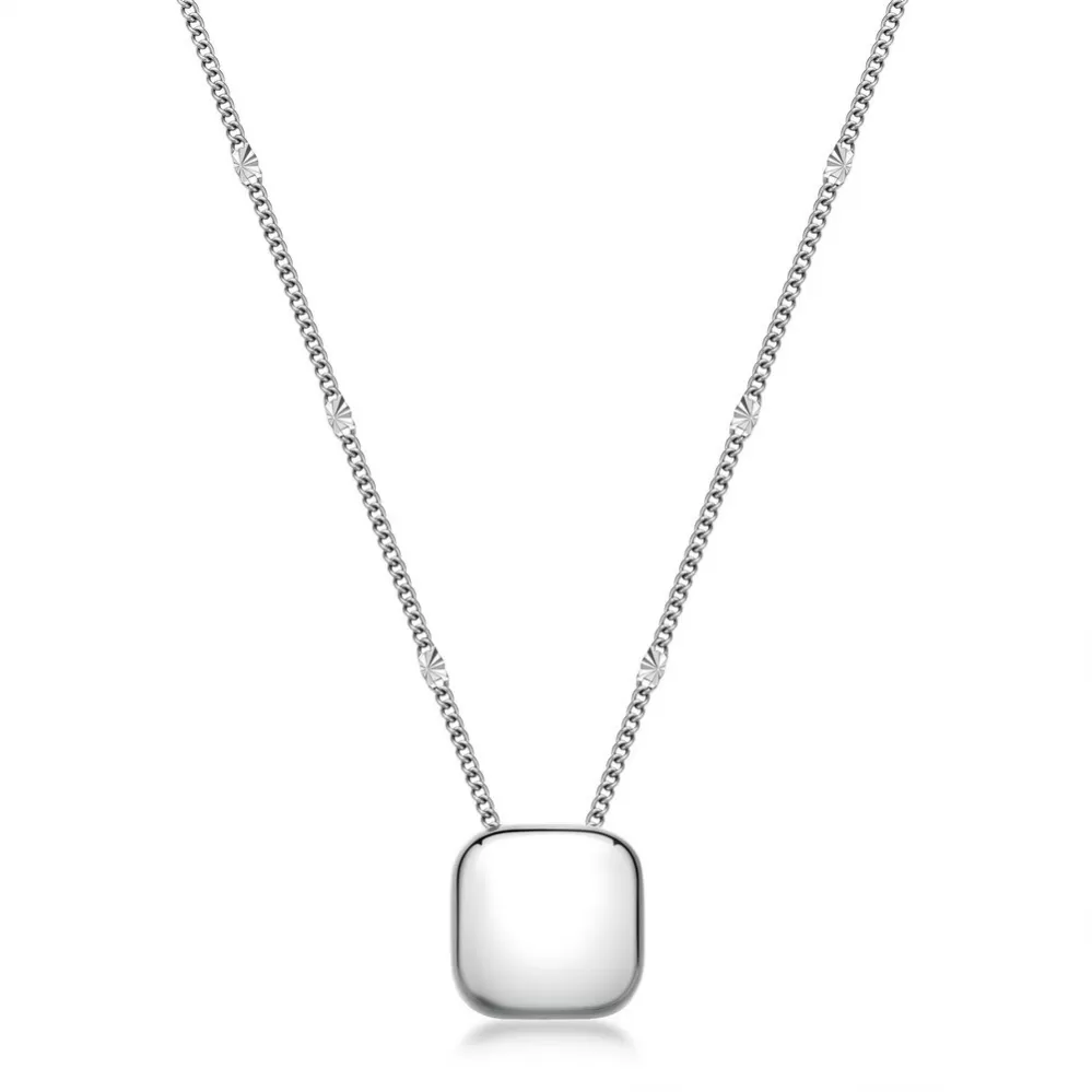 Tento náhrdelník je ztělesnění jednoduché elegance a moderního šarmu. Je navržen tak, aby podtrhl přirozenou krásu každé ženy a dodal jejímu stylu nezaměnitelný detail. Náhrdelník je vyroben z kvalitní chirurgické oceli v lesklé povrchové úpravě. Náhrdelník je zdoben přívěskem čtvercového tvaru. Čistý design náhrdelníku a jeho zpracování zaručují, že se stane oblíbeným doplňkem pro každou příležitost.