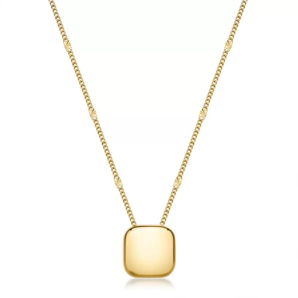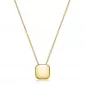 Tento náhrdelník je ztělesnění jednoduché elegance a moderního šarmu. Je navržen tak, aby podtrhl přirozenou krásu každé ženy a dodal jejímu stylu nezaměnitelný detail. Náhrdelník je vyroben z kvalitní chirurgické oceli, která je ošetřena PVD povrchovou úpravou barvě žlutého zlata, pro větší odolnost. Náhrdelník je zdoben přívěskem čtvercového tvaru. Čistý design náhrdelníku a jeho zpracování zaručují, že se stane oblíbeným doplňkem pro každou příležitost.