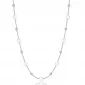 Náhrdelník je elegantní šperk navržený pro ženy, které ocení nadčasový design a kvalitní zpracování. Je vyroben z kvalitní chirurgické oceli, která je hypoalergenní a odolná vůči opotřebení. Design náhrdelníku tvoří řetízek na kterém jsou navlečeny korálky v imitaci bílé perly, které dodávají šperku jemnost a sofistikovanost. Délka náhrdelníku je 46 cm, což je ideální pro pohodlné nošení, a zapínání je řešeno ocelovým karabinkovým uzávěrem, který zajišťuje bezpečné a snadné nasazení.