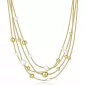 Náhrdelník je elegantní šperk navržený pro ženy, které ocení nadčasový design a kvalitní zpracování. Je vyroben z kvalitní chirurgické oceli, která je hypoalergenní a odolná vůči opotřebení. Povrch náhrdelníku je ošetřen zlatým povlakem PVD, který mu dodává teplý odstín a lesk. Design tvoří několik řetízků, na nichž jsou navlečeny korálky v imitaci bílé perly, což dodává šperku jemnost a sofistikovanost. Délka náhrdelníku je 49 cm, což je ideální pro pohodlné nošení, a zapínání je řešeno ocelovým karabinovým uzávěrem, který zajišťuje bezpečné a snadné nasazení.