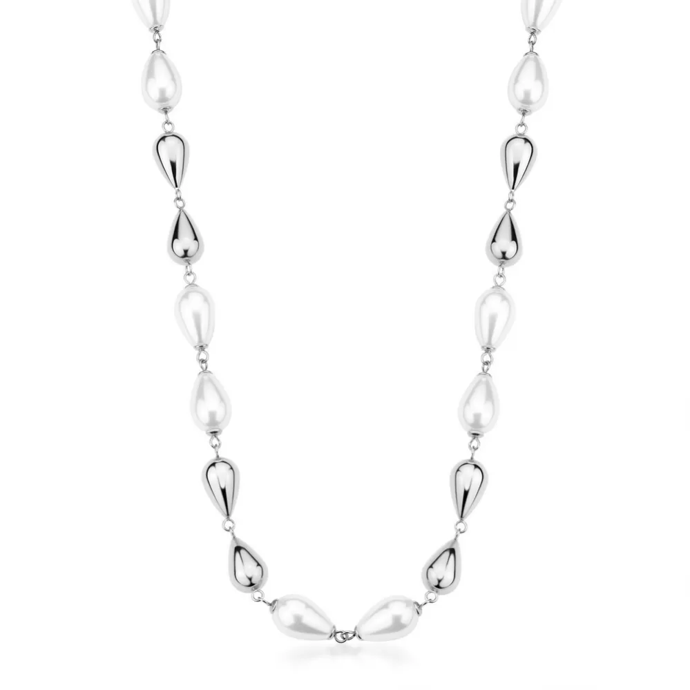 Tento náhrdelník je vyroben z chirurgické oceli. Design náhrdelníku je ozdoben bílými slzovitými perlami, které vytvářejí jemný a ženský kontrast k stříbrnému kovu. Zapínání je řešeno jednoduchou ale spolehlivou karabinou. Celkově působí model jako vkusný doplněk vhodný pro každá den i na slavnostnější příležitosti.