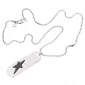Značka Thierry Mugler se vyznačuje osobitým a stylovým přístupem k módě a také v oblasti vytváření šperků. Tento náhrdelník z chirurgické oceli je tvořen z ocelové destičky, která je zdobena klasickým znakem Thierry Mugler u kterého je patrná souvztažnost s jedním z neprodávanějších parfémů na světě a to s Thierryho pýchou parfémem "Angel". Destička je vyrobena v barevném ocelové barvy a černé hvězdy v kombinaci lesklé a matné povrchové úpravy. Náhrdelník je zavěšen na řetízku typu Venecia. K náhrdelníku je přidán 5cm řetízek, který se dá použít buď k prodloužení řetízku a nebo jako řetízek k zavěšení přívěsku.