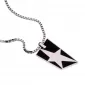 Značka Thierry Mugler se vyznačuje osobitým a stylovým přístupem k módě a také v oblasti vytváření šperků. Tento dámský náhrdelník z chirurgické oceli je tvořen z ocelové destičky, která je zdobena klasickým znakem Thierry Mugler. Destička je vyrobena v barevném zborazení černé a ocelové barvy v kombinaci lesklé a matné povrchové úpravy. Náhrdelník je zavěšen na řetízku typu Venecia. K přívěsku je přidán 5cm řetízek, který se dá použít buď k prodloužení řetízku a nebo jako řetízek k zavěšení přívěsku.