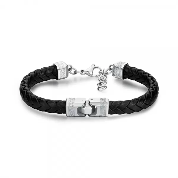 Elegantní pánský náramek je vyroben v kombinaci černé kůže a vysoce kvalitní nerezové ocele. Ocel je zdobena je zajímavým rytím. Délka náramku je 17 cm, s využitím řetízku 3 cm, je možné náramek zapnout v délce 17 až 20 cm. Nastavitelná délka má užasnou výhodu v tom, že nemusíte znát přesnou délku náramku a obdarovaná osoba si délku sama upraví podle vlastních preferencí. Náramek se zapíná na spolehlivou karabinu.