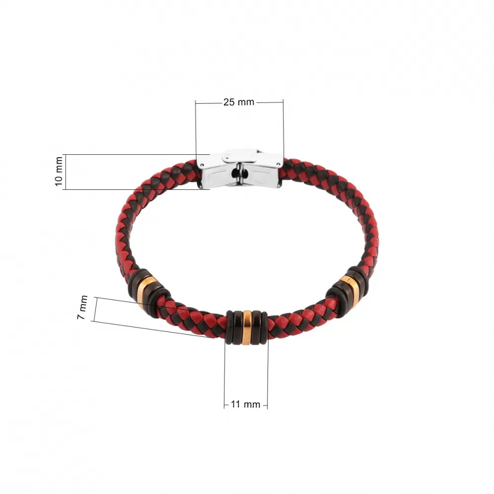 Náramek je vhodným dárkem pro elegantní muže a je tvořen zapletenými pásky z černé a červené PU kůže do kulatého průřezu.