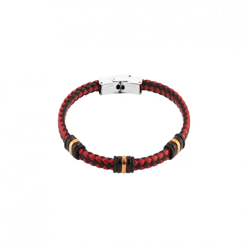 Náramek je vhodným dárkem pro elegantní muže a je tvořen zapletenými pásky z černé a červené PU kůže do kulatého průřezu.
