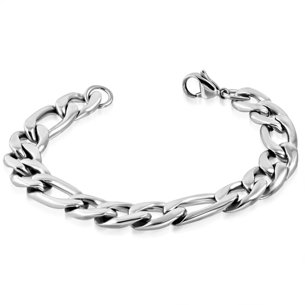 Masivní náramek typu Figaro 3+1 se zapínáním na karabinu a je vyroben v lesklé povrchové úpravě. Tento klasický náramek potěší a ozdobí každého muže.