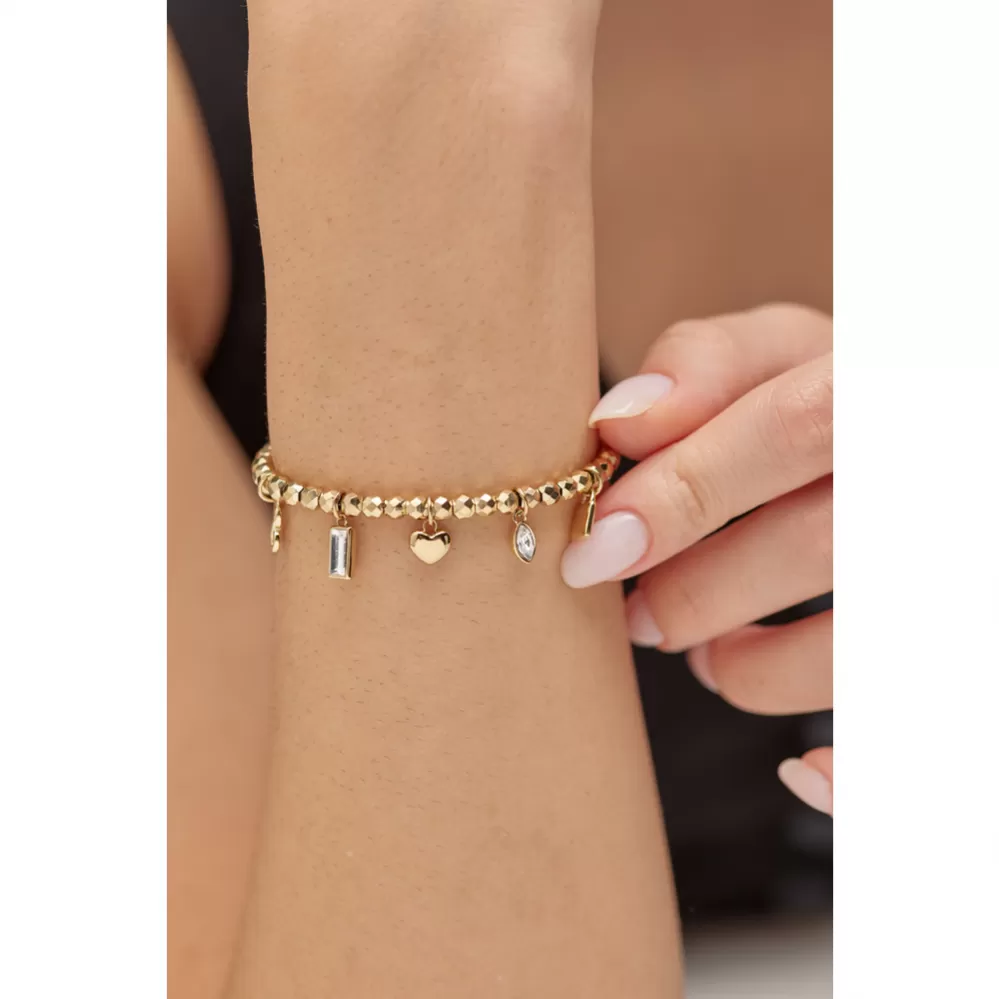 Ozdobte své zápěstí luxusním náramkem z vysoce kvalitní nerezové ocele. Ocel je ošetřena PVD povrchovou úpravou v barvě žlutého zlata. Náramek je zdoben přívěsky se Swarovski krystaly. Délka náramku je 15 cm, s využitím řetízku 3 cm, je možné náramek zapnout v délce 15 až 18 cm. Nastavitelná délka má užasnou výhodu v tom, že nemusíte znát přesnou délku náramku a obdarovaná osoba si délku sama upraví podle vlastních preferencí.