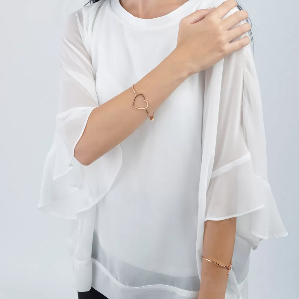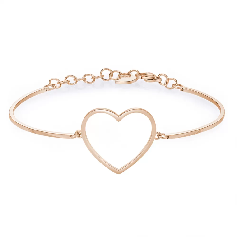 Vysoce elegantní šperk pro ženy je vyroben z kvalitní ušlechtilé ocele, která je opatřena povrchovou úpravou v barvě růžového zlata. Náramek zdobí velké, nepřehlédnutelné srdce. Délka náramku je 15 cm, s využitím řetízku 3 cm, je možné náramek zapnout v délce 15 až 18 cm. Nastavitelná délka má užasnou výhodu v tom, že nemusíte znát přesnou délku náramku a obdarovaná osoba si délku sama upraví podle vlastních preferencí. Náramek se zapíná na spolehlivou karabinu.