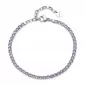 Tento náramek je luxusní doplněk, který spojuje moderní design s jemným leskem kubických zirkonů. Je vyroben z kvalitní nerezové oceli, která zaručuje vysokou odolnost a dlouhotrvající lesk. Dominantním prvkem jsou precizně broušené kubické zirkony ve fialové barvě, které při dopadu světla vytvářejí jemnou hru odlesků a dodávají šperku sofistikovaný nádech. Každý zirkon je pečlivě vsazen do ocelového lůžka, což zaručuje bezpečné uchycení i pro dlouhodobém nošení. Tento model je ideální pro ženy, které milují šperky s třpytem, ale zároveň si potrpí na decentní a vkusný styl.