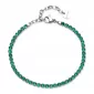 Tento náramek je luxusní doplněk, který spojuje moderní design s jemným leskem kubických zirkonů. Je vyroben z kvalitní nerezové oceli, která zaručuje vysokou odolnost a dlouhotrvající lesk. Dominantním prvkem jsou precizně broušené kubické zirkony v zelené barvě, které při dopadu světla vytvářejí jemnou hru odlesků a dodávají šperku sofistikovaný nádech. Každý zirkon je pečlivě vsazen do ocelového lůžka, což zaručuje bezpečné uchycení i pro dlouhodobém nošení. Tento model je ideální pro ženy, které milují šperky s třpytem, ale zároveň si potrpí na decentní a vkusný styl.