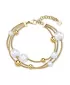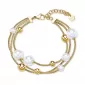 Tento masivní čtyřřadový náramek vyroben z kvalitní chirurgické oceli, která zaručuje odolnost vůči opotřebení a dlouhou životnost. Povrch je opatřen zlatým PVD povlakem, který mu dodává teplý zlatý odstín a ochranu proti zašednutí. Na náramku jsou navlečeny korálky v zlaté barvě a prvky z imitace perel, které vytvářejí elegantní kontrast a zajímavou strukturu. Délka náramku je 20,5 cm, což poskytuje dostatečný rozsah pro pohodlné nošení. Design náramku je robustní a stylový, vhodný pro každodenní nošení i slavnostní příležitosti. Je dokonalým doplňkem, který dodá outfitu šarm, hloubku a výrazný prvek.