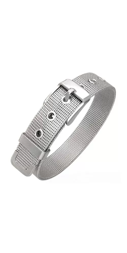 Moderní náramek z chirurgické oceli v lesklé povrchové úpravě. Náramek se zapíná pomocí spony v rozmezí 15 až 19cm.