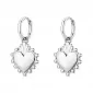 Tyto náušnice jsou vyroben z chirurgické oceli, která zaručuje odolnost, pevnost a dlouhou životnost. Jedná se o kruhové náušnice s přívěskem ve tvaru lesklého srdce, což dodává jemnost i zajímavý vizuální detail. Zapínání je řešeno pomocí ocelového patentu, což umožňuje pohodlné bezpečné nasazení. Náušnice působí lehce a vzdušně, vhodné pro každodenní nošení ke všem typům outfitu.