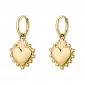 Tyto náušnice jsou vyroben z chirurgické oceli, která zaručuje odolnost, pevnost a dlouhou životnost. Povrch náušnic je opatřen zlatým PVD povlakem, díky čemuž mají krásný lesklý zlatý odstín. Jedná se o kruhové náušnice s přívěskem ve tvaru lesklého srdce, což dodává jemnost i zajímavý vizuální detail. Zapínání je řešeno pomocí ocelového patentu, což umožňuje pohodlné bezpečné nasazení. Náušnice působí lehce a vzdušně, vhodné pro každodenní nošení ke všem typům outfitu.