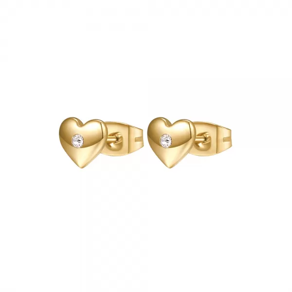 Roztomilé náušnice pecky jsou vyrobeny z vysoce leštěné nerezové oceli, která je ošetřena PVD povrchovou úpravou v barvě žlutého zlata. Náušnice ve tvaru srdíček ocení nejen ženy ale i dívky. Srdíčka zdobí prvotřídní Swarovski krystal. Zapínají se na puzety.
