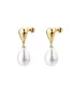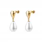 Tyto náušnice jsou jemné a elegantní náušnice, které dokonale vystihují moderní styl s nádechem klasické ženskosti. Jsou vyrobeny z kvalitní chirurgické oceli, která je odolná, pevná a hypoalergenní, takže jsou vhodné i pro každodenní nošení. Povrch náušnic je pokryt zlatým PVD povlakem, díky kterému získají krásný, trvanlivý zlatý lesk. Design náušnic je tvořen zlatými kapkami doplněnými dekorativními prvky v podobě imitace perel, které dodávají šperku jemný a ženský výraz. Délka náušnic je 30 mm, což z nich činí decentní, ale nepřehlédnutelný doplněk. Zapínání je řešeno klasickou ocelovou puzetou, která zajišťuje bezpečné a pohodlné nošení.