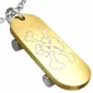 Přívěsek ve tvaru skateboardu z chirurgické oceli se zlacením PVD  v lesklé povrchové úpravě.