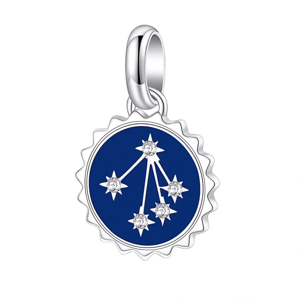 Přívěsek z vysoce kvalitní ušlechtilé ocele v lesklé povrchové úpravě je zdoben modrým smaltem a souhvězdím vah. Místo hvězd jsou precizně vsazeny Swarovski krystaly.