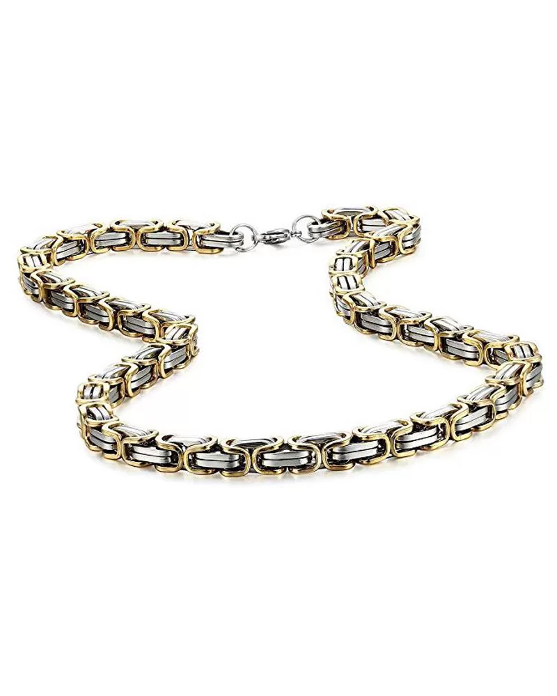 Toto provedení tohoto řetízku se nazývá královská vazba. Řetízek je určen pro muže i ženy a je vyroben z chirurgické oceli. Řetízek je částečně opatřen PVD povrchovou úpravou, neboli vakuové pokovení. Zlacení je velmi tvrdé a rovná se cca 12 mikronům zlacení galvanického.