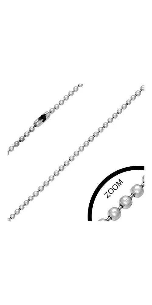 V současné době velmi moderní kuličkový řetízek je vyrobený z chirurgické oceli v lesklé povrchové úpravě. Chirurgická ocel vyniká svou barevnou stálostí a nezanechává alergické reakce.
