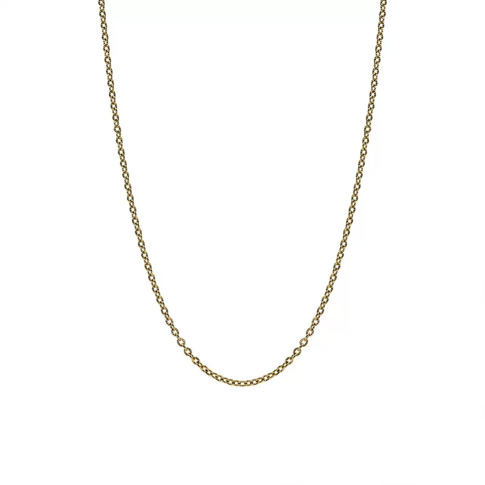 Dámský řetízek vyroben z kvalitní ušlechtilé ocele. Ocel je ošetřena PVD povrchové úpravě v barvě žlutého zlata. Řetízek je precizně zpracován tak, aby zvládl prezentovat jakýkoliv přívěsek.