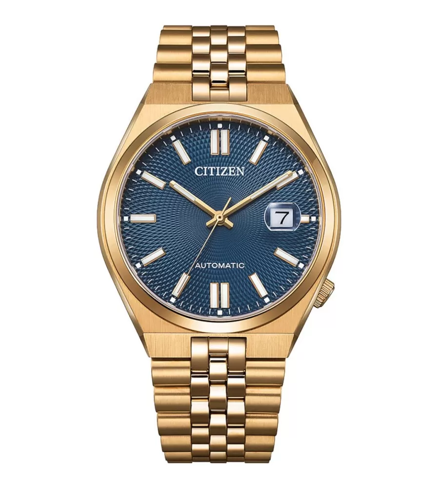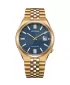 Tyto stylové hodinky jsou vhodné pro muže i ženy. Jsou to automatické hodinky, které kombinují elegantní design s praktickými funkcemi. Jejich ocelové pouzdro o průměru 40 mm je doplněno pětirohovým náramkem s motýlkovou sponou. Modrý ciferník s jemným vzorem působí velmi výrazně a současně vkusně, doplňují ho zlaté detaily a luminiscenční ručičky, které zajišťují čitelnost i ve tmě. Hodinky pohání mechanický samonatahovací strojek, který nabití rezervu chodu až 60 hodin. Mají datum na pozici 3 hodiny, které je zvětšené lupou. Sklo je safírové, odolné proti poškrábání, což zvyšuje trvanlivost a zachovává čistý vzhled ciferníku.