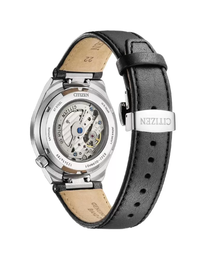 Hodinky mají pouzdro vyrobené z ušlechtilé oceli, které doplňuje kožený řemínek. Uvnitř pouzdra najdeme mechanický in-house strojek Citizen 8322 s automatickým nátahem, který lze natahovat i manuálně korunkou. Tento strojek pracuje na frekvenci 21600 polokmitů za hodinu, disponuje 21 kameny a mimostřednou sekundovou ručkou na pozici šesté hodiny. Činnost strojku lze pozorovat díky průhlednému dýnku. Jednoduchý a výborně čitelný číselník je chráněn safírovým sklíčkem, které je maximálně odolné vůči poškrábání. Voděodolnost těchto hodinek je 50 m, bez problému tedy zvládnou menší kontakt s vodou, jako déšť či sprcha.