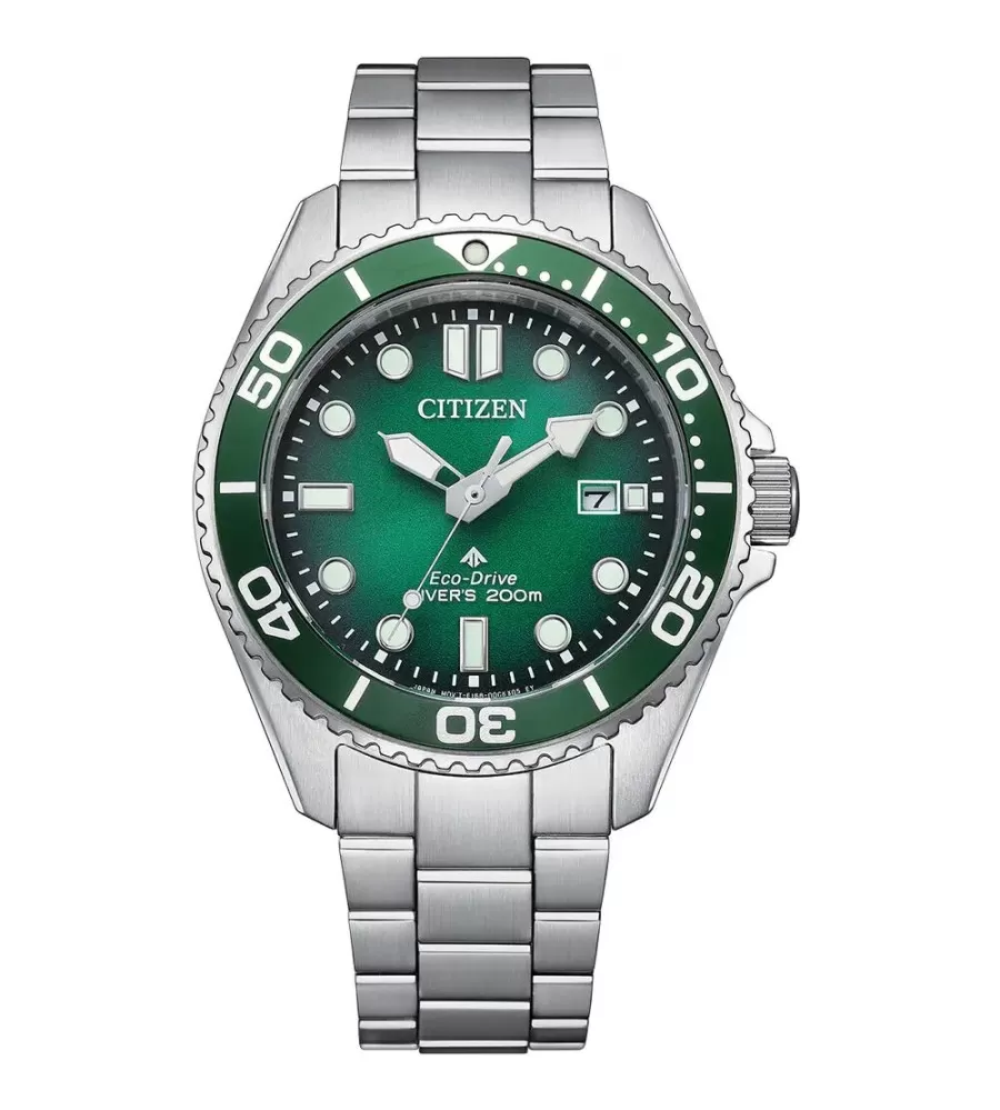 Pouzdro i náramek jsou vyrobeny z kvalitní nerezové oceli, chráněny safírovým sklíčkem s antireflexní úpravou. Díky šroubovací korunce a vodotěsnosti 200 m splňují hodinky přísné normy ISO pro potápěčské hodinky. Zelený ciferník je dobře čitelný, s výraznými luminiscenčními ručičkami a indexy, které zaručují viditelnost i ve tmě. Nechybí datumovka na pozici 3. hodiny.
